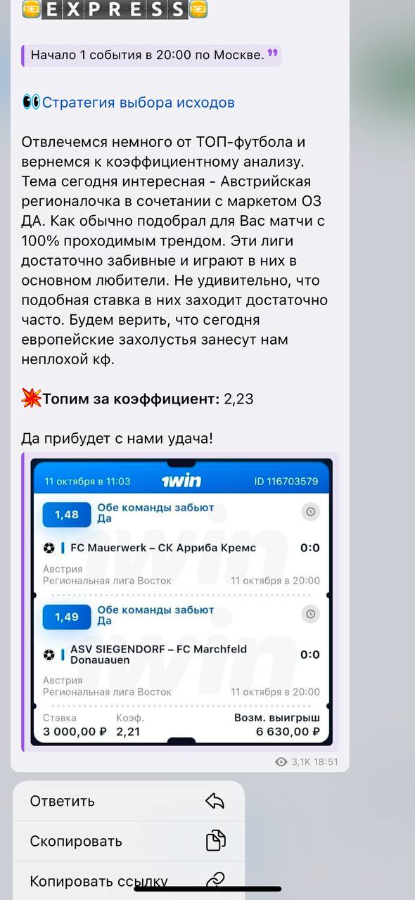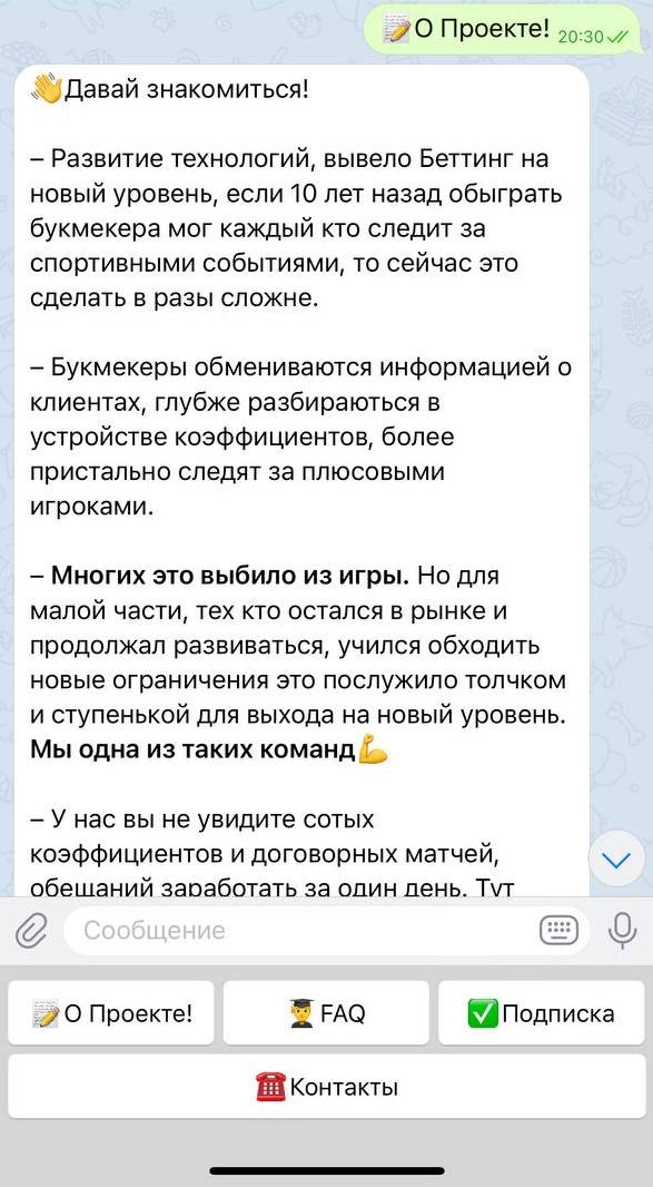 Канал ведется сдержанно, нет 1000 постов и постоянных призывов покупать. В основном, контент канала состоит из бесплатных матчей и отчетам по платным подпискам, о которых мы расскажем позже.